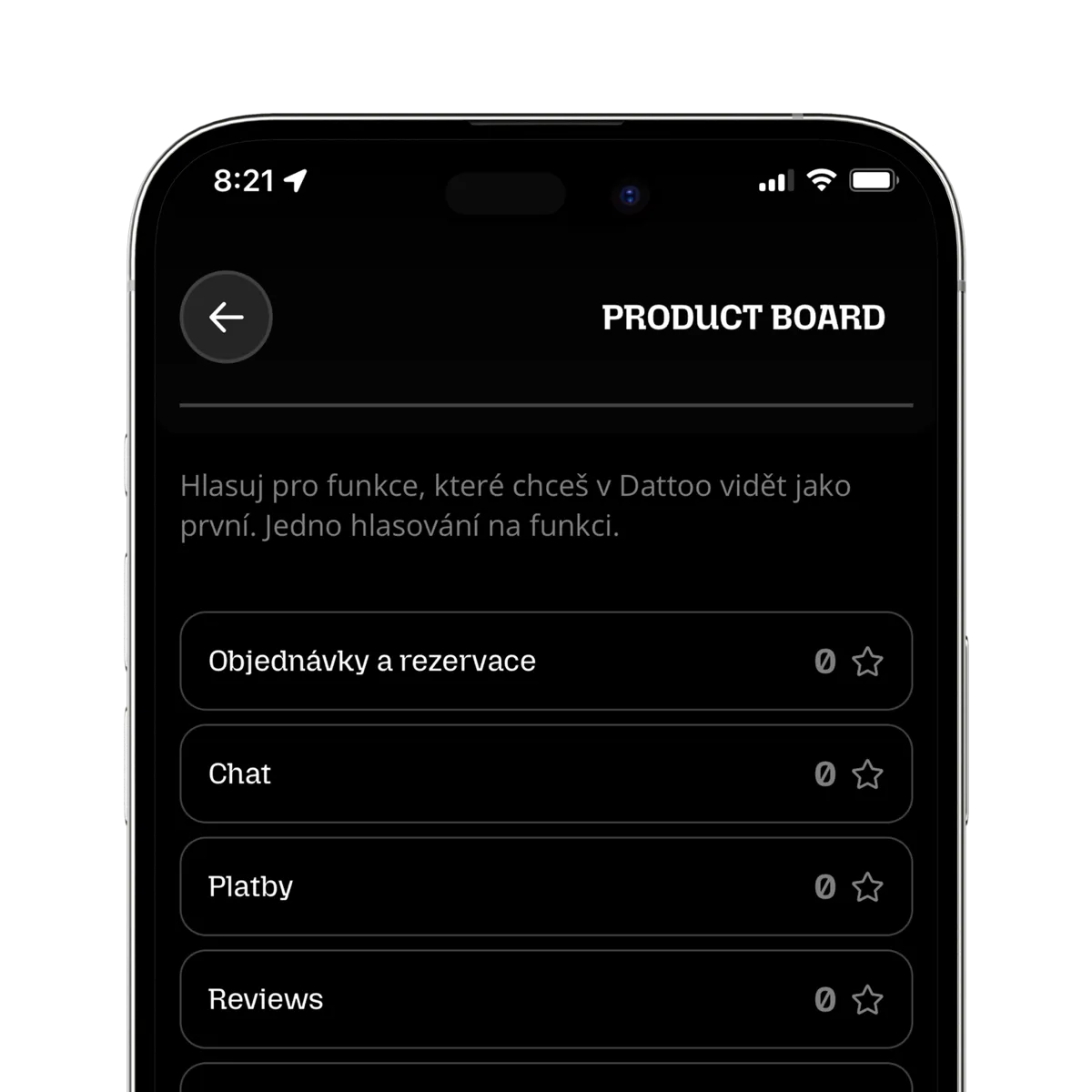 V nastavení vyber obrazovku "O Aplikaci", tady najdeš seznam funkcí, o kterých můžeš hlasovat. Funkce s nejvíce hlasy se budou přidávat jako první.